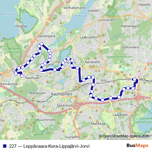 Click here to view the nearest 227 - Leppävaara-Kera-Lippajärvi-Jorvi bus stop.