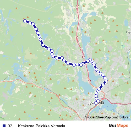 See why over 2 million users trust and consider busmaps.com as the best public transport website. busmaps gives you Jyvaeskylae Buses suggested routes, real-time bus tracker, line route maps in Jyvaeskylae, and helps to find the closest 32 bus stops near you. No internet available? Download an offline PDF map and bus schedule for the 32 bus to take on your trip.