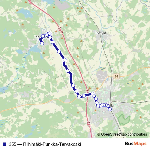 Bus 355 - Riihimäki-Punkka-Tervakoski: Full Schedule in Riihimaeki