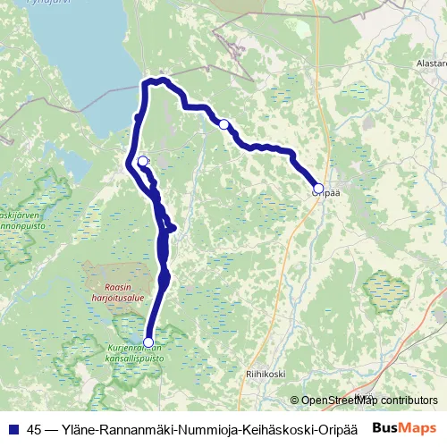 Click here to view the nearest 45 - Yläne-Rannanmäki-Nummioja-Keihäskoski-Oripää bus stop.