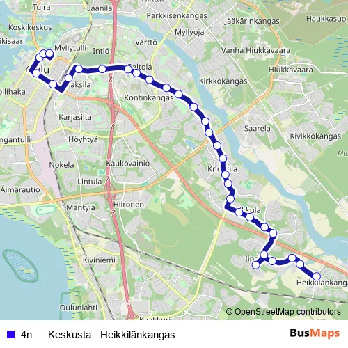 See why over 2 million users trust and consider busmaps.com as the best public transport website. busmaps gives you Oulu Buses suggested routes, real-time bus tracker, line route maps in Oulu, and helps to find the closest 4n bus stops near you. No internet available? Download an offline PDF map and bus schedule for the 4n bus to take on your trip.
