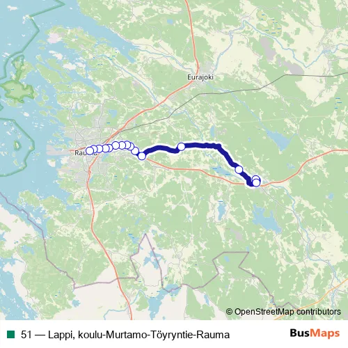Bus 51 - Lappi, koulu-Murtamo-Töyryntie-Rauma in Rauma: Stops & Timetable