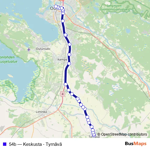 Bus 54b - Keskusta - Tyrnävä: Full Schedule in Oulu