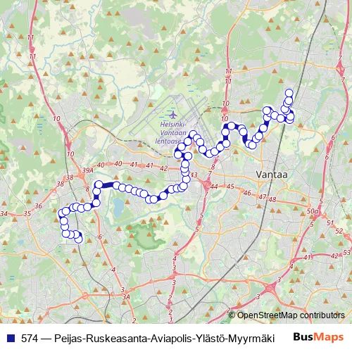 Bus 574 - Peijas-Ruskeasanta-Aviapolis-Ylästö-Myyrmäki: Full Schedule in Helsinki
