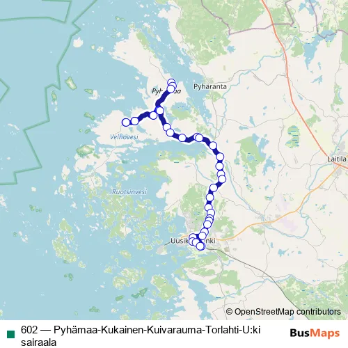 Click here to view the nearest 602 - Pyhämaa-Kukainen-Kuivarauma-Torlahti-U:ki sairaala bus stop.