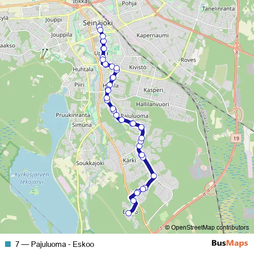 See why over 2 million users trust and consider busmaps.com as the best public transport website. busmaps gives you Seinaejoki Buses suggested routes, real-time bus tracker, line route maps in Seinaejoki, and helps to find the closest 7 bus stops near you. No internet available? Download an offline PDF map and bus schedule for the 7 bus to take on your trip.