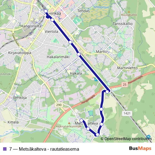Bus 7 - Metsäkalteva - rautatieasema: Full Schedule in Hyvinge