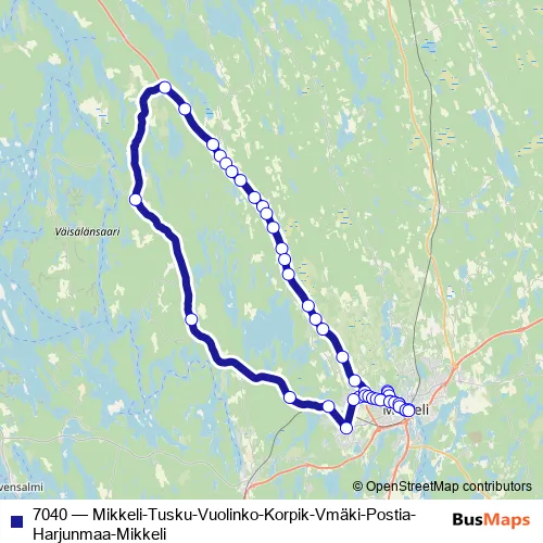 Bus 7040 - Mikkeli-Tusku-Vuolinko-Korpik-Vmäki-Postia-Harjunmaa-Mikkeli: Full Schedule in Mikkeli