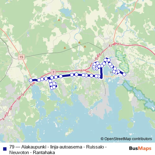 See why over 2 million users trust and consider busmaps.com as the best public transport website. busmaps gives you Hamina Buses suggested routes, real-time bus tracker, line route maps in Hamina, and helps to find the closest 79 bus stops near you. No internet available? Download an offline PDF map and bus schedule for the 79 bus to take on your trip.
