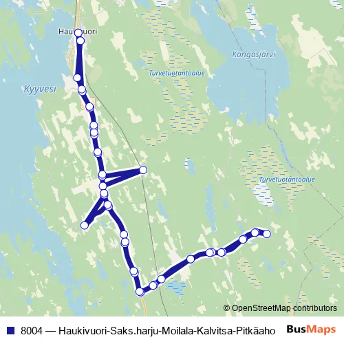 Click here to view the nearest 8004 - Haukivuori-Saks.harju-Moilala-Kalvitsa-Pitkäaho bus stop.