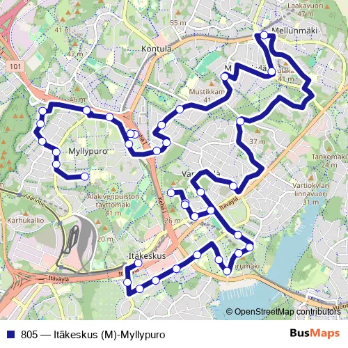 Bus 805 - Itäkeskus (M)-Myllypuro: Full Schedule in Helsinki