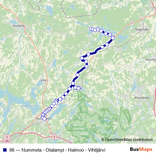 Bus 86 - Nummela - Otalampi - Haimoo - Vihtijärvi: Full Schedule in Vihti