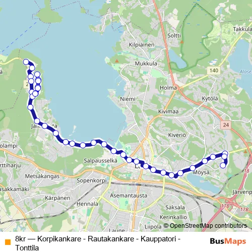 Bus 8kr - Korpikankare - Rautakankare - Kauppatori - Tonttila Schedule in Lahti