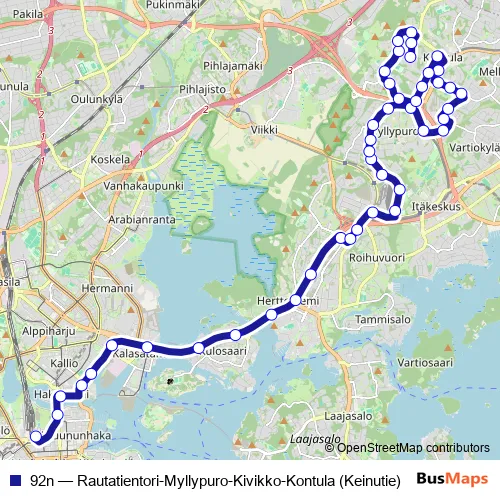 Click here to view the nearest 92n - Rautatientori-Myllypuro-Kivikko-Kontula (Keinutie) bus stop.