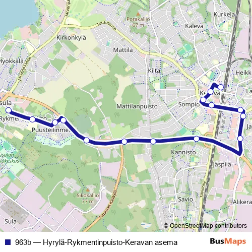 963b Bus - Hyrylä-Rykmentinpuisto-Keravan asema