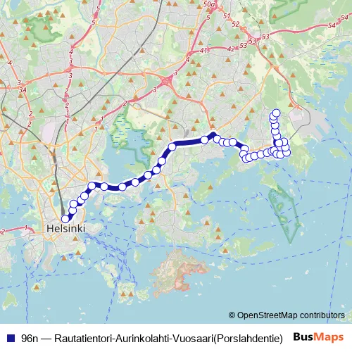 Bus 96n - Rautatientori-Aurinkolahti-Vuosaari(Porslahdentie) Schedule in Helsinki