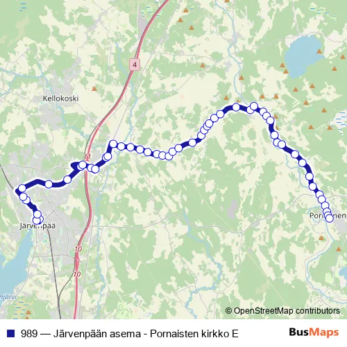 Bus 989 - Järvenpään asema - Pornaisten kirkko E in Pornainen: Stops & Timetable