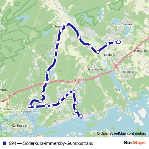 Bus 994 - Söderkulla-Immersby-Gumbostrand: Full Schedule in Helsinki