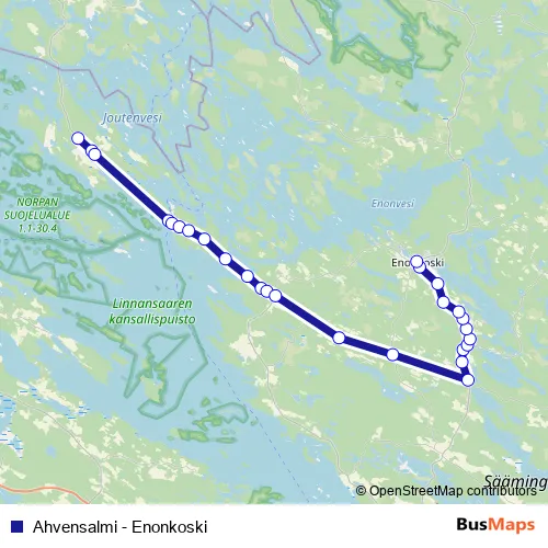 Additional information: Ahvensalmi - Enonkoski has 27 stops and the total trip duration for this route is approximately 65 minutes.
