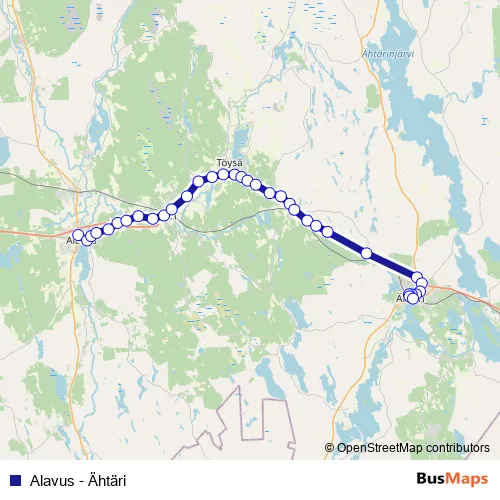 The first stop of the Alavus - Ähtäri bus route is Alavus and the last stop is