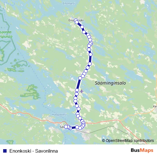 Additional information: Enonkoski - Savonlinna has 38 stops and the total trip duration for this route is approximately 50 minutes.