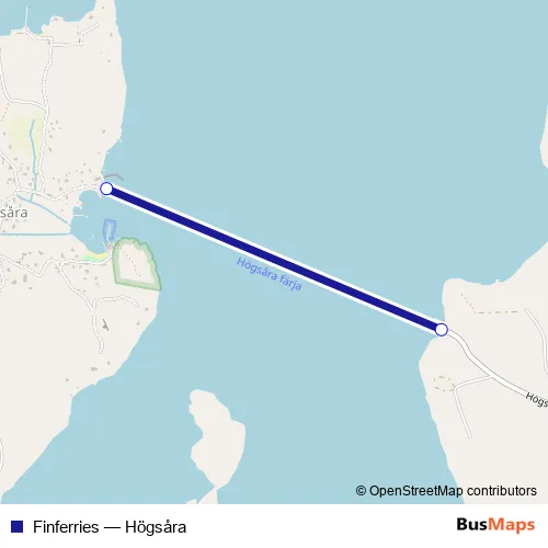 The first stop of the Finferries ferry route is Högsåra and the last stop is Svartnäs. Finferries (Högsåra) is operational during joka päivä.