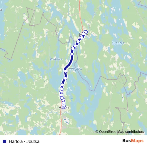 Additional information: Hartola - Joutsa has 22 stops and the total trip duration for this route is approximately 35 minutes.