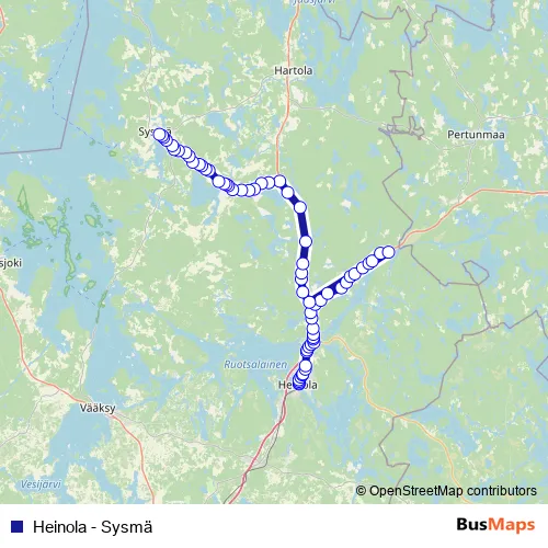 Additional information: Heinola - Sysmä has 65 stops and the total trip duration for this route is approximately 67 minutes.