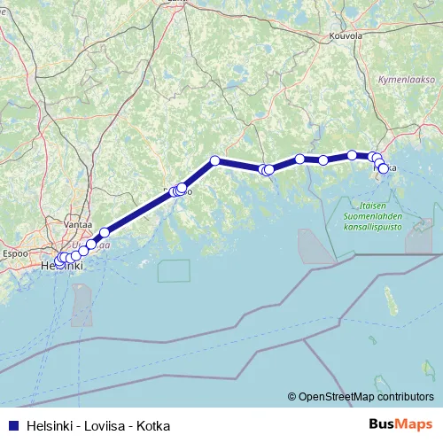 See why over 2 million users trust and consider busmaps.com as the best public transport website. busmaps gives you Helsinki Buses suggested routes, real-time bus tracker, line route maps in Helsinki, and helps to find the closest Helsinki - Loviisa - Kotka bus stops near you. No internet available? Download an offline PDF map and bus schedule for the Helsinki - Loviisa - Kotka bus to take on your trip.
