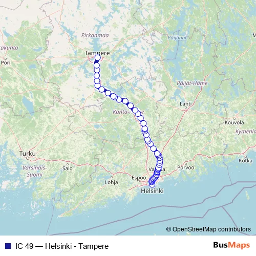 Click here to view the nearest IC 49 - Helsinki - Tampere rail stop.