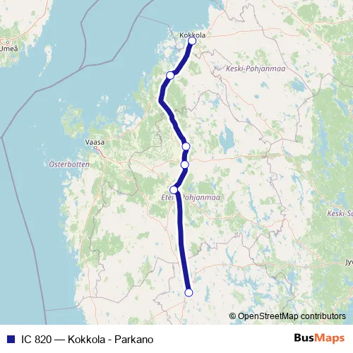 Click here to view the nearest IC 820 - Kokkola - Parkano rail stop.