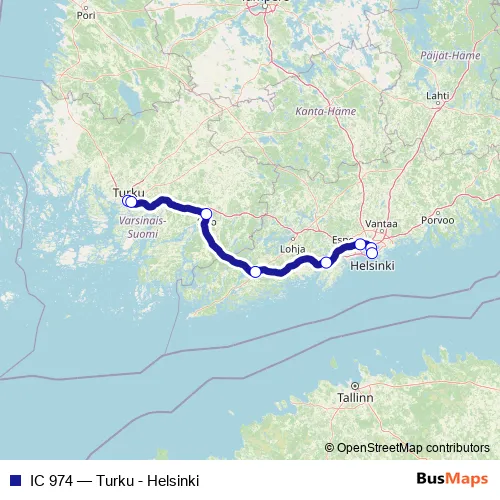 Click here to view the nearest IC 974 - Turku - Helsinki rail stop.