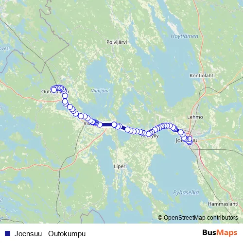 Additional information: Joensuu - Outokumpu has 60 stops and the total trip duration for this route is approximately 75 minutes.