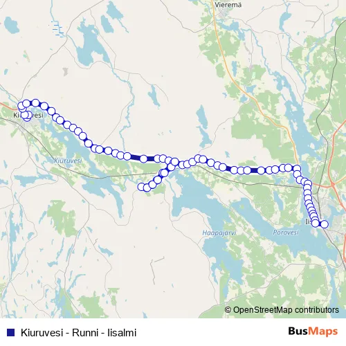 Additional information: Kiuruvesi - Runni - Iisalmi has 71 stops and the total trip duration for this route is approximately 62 minutes.