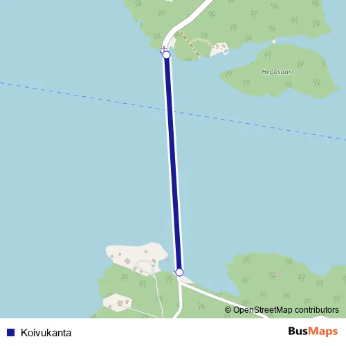 The first stop of the Koivukanta ferry route is Koivukanta and the last stop is Kesamonsaari P. Koivukanta is operational during joka päivä.