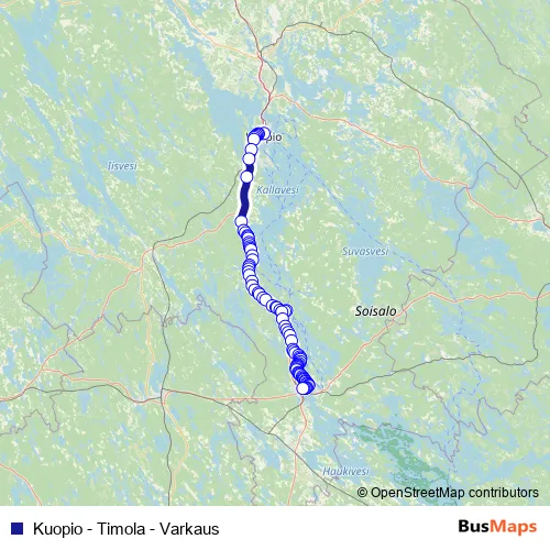 Kuopio - Timola - Varkaus bus Route Map