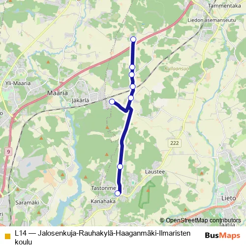 Click here to view the nearest L14 - Jalosenkuja-Rauhakylä-Haaganmäki-Ilmaristen koulu bus stop.