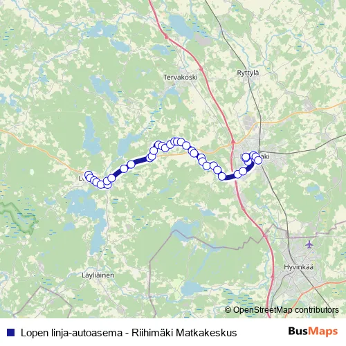 Lopen linja-autoasema - Riihimäki Matkakeskus bus Route Map