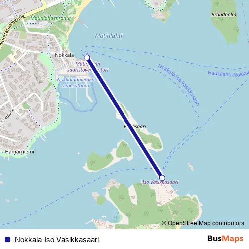 Nokkala-Iso Vasikkasaari ferry Route Map