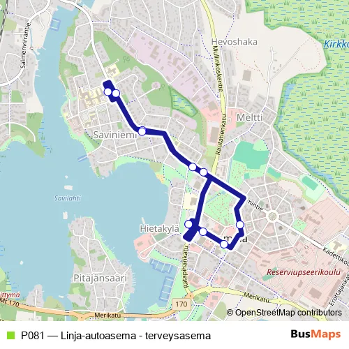 Click here to view the nearest P081 - Linja-autoasema - terveysasema bus stop.