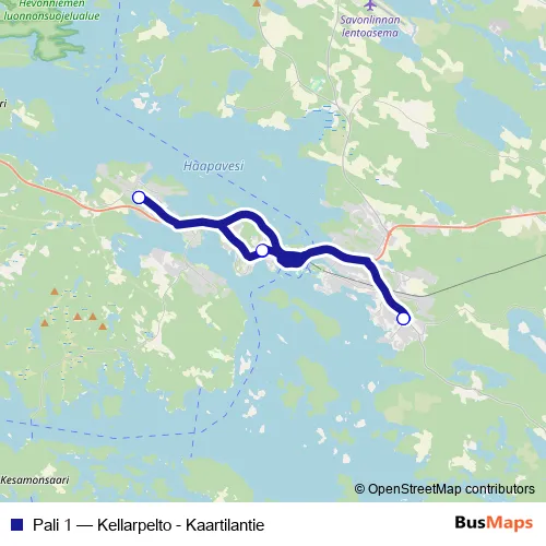 See why over 2 million users trust and consider busmaps.com as the best public transport website. busmaps gives you Savonlinna Buses suggested routes, real-time bus tracker, line route maps in Savonlinna, and helps to find the closest Pali 1 bus stops near you. No internet available? Download an offline PDF map and bus schedule for the Pali 1 bus to take on your trip.