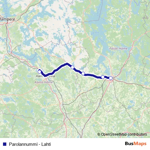 Additional information: Parolannummi - Lahti has 5 stops and the total trip duration for this route is approximately 85 minutes.