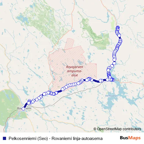 Pelkosenniemi (Seo) - Rovaniemi linja-autoasema bus Route Map