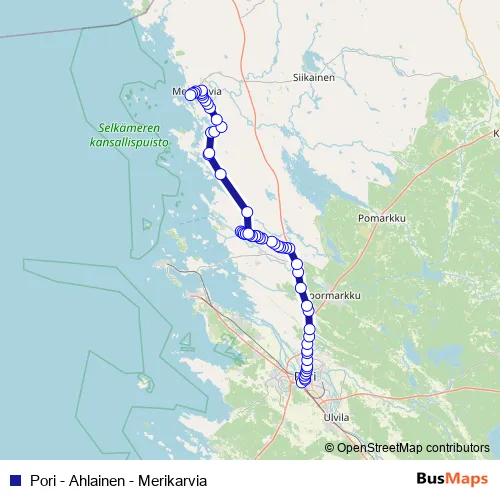 Pori - Ahlainen - Merikarvia bus Route Map