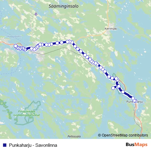 Additional information: Punkaharju - Savonlinna has 49 stops and the total trip duration for this route is approximately 65 minutes.