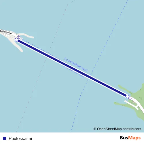The first stop of the Puutossalmi ferry route is Soisalo and the last stop is Puutossalmi. Puutossalmi is operational during joka päivä.