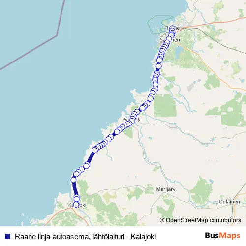 Additional information: Raahe linja-autoasema, lähtölaituri - Kalajoki has 64 stops and the total trip duration