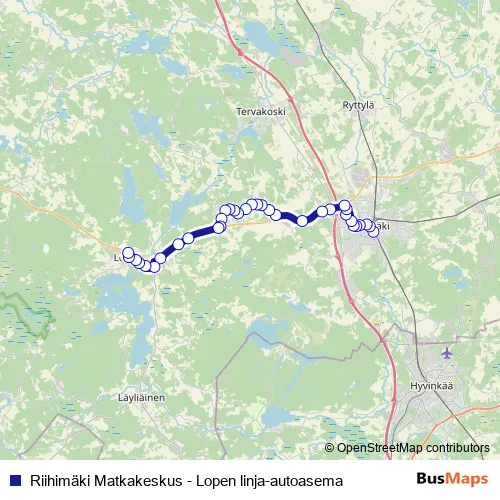 Bus Riihimäki Matkakeskus - Lopen linja-autoasema in Riihimaeki: Stops & Timetable