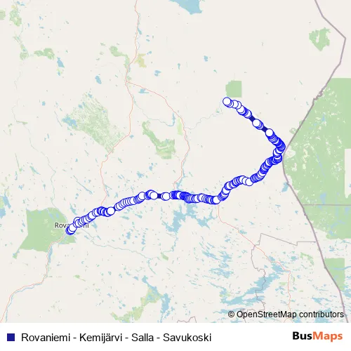 Rovaniemi - Kemijärvi - Salla - Savukoski bus Route Map