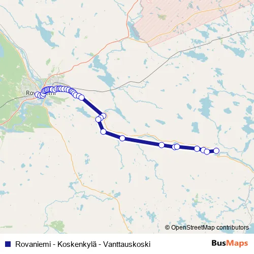 Rovaniemi - Koskenkylä - Vanttauskoski bus Route Map